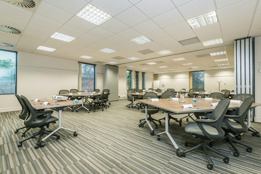 The Stratford room is a large conference room on the 1st floor of the management centre with its own private coffee lounge with Coffee machine, water coolers, fresh fruit. The room also has 5 syndicate rooms attached to the main room which is perfect for delegates to use for private work.