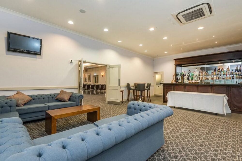 The Arden Suite is a building located in the grounds of New place which has direct access to a terrace with speakers, patio heaters and table and chairs. This room has its own separate coffee lounge and private Bar.